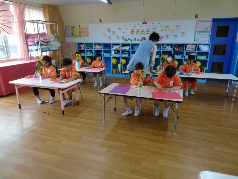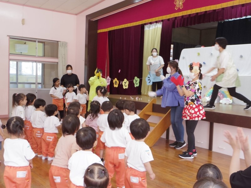 6月17日 園外保育 年長組の子ども達がしもだて美術館に行きました🚌 美術館で開催されている企画展〈筑西市誕生20周年記念 中山みどり フェルトアート展 ~ほっころび時間~>に行き、かわいいフェルトアートを鑑賞してきました🐶 6月13日 園外保育 年少組と年中組の子ども達がしもだて美術館に行きました🚌 美術館で開催されている企画展〈筑西市誕生20周年記念 中山みどり フェルトアート展 ~ほっころび時間~>に行き、かわいいフェルトアートを鑑賞してきました🐶 6月6日 園外保育 年少組と年中組の子ども達がバスに乗って下岡崎公園にお出かけしました🚌 5月29日 ヒマワリの種 年長組の子ども達がヒマワリの種を植えました🌻 新しいおもちゃが仲間入り🦖 やわらかい素材の恐竜のおもちゃを購入しました🦖 7種類のリアルで迫力のある恐竜に子どもたちはとても大興奮! お友達と仲良く遊んでいました 5月28日 4月・5月誕生日会🎂 4月・5月生まれの子どもたちの誕生日会がありました🎂 子どもたちはステージに上がって、大きな声でお名前や好きな食べ物を発表することができました! また自由参加で保護者の方にも園に来ていただき、園児と一緒にお誕生日をお祝いしました。 みんなでお祝い! 人形劇「もも太郎」 スペシャルゲストも参加してみんなでお祝いしました! さつまいもの苗が成長しました🍠 年長組の子どもたちが植えたさつまいもの苗が成長しました! 5月21日 親子遠足 アクアワールドへ親子遠足に行きました 年長組 音楽教室🎹 園長が音楽教室をひらき、年長組の子ども達に音楽の楽しさや楽器のおもしろさを教えています🎹 ひまわり写生会🌻 年長組の子どもたちが、保護者の方から頂いたひまわりの花の絵を描きました🌻