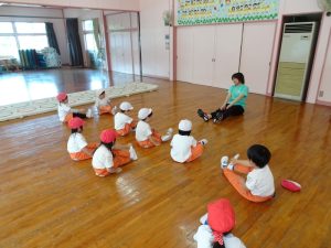 年中組の体操教室に、カワイ体操教室の先生に来ていただいています。